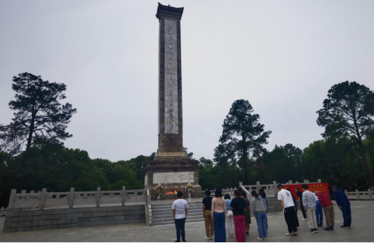 5月10日到达之后,大家在麻城市烈士陵园开展专题党课,缅怀革命先烈。全体党员在黄麻起义和鄂豫皖苏区革命烈士纪念碑前庄严肃立,敬献花篮,集体默哀鞠躬,深切缅怀为民族解放事业英勇献身的英烈。全体党员重温入党誓词,铿锵誓言回荡在苍松翠柏间。随后,大家在纪念园内系统学习革命根据地建设与群众路线的历史经验,在庄重肃穆的氛围中感悟“坚守信念、胸怀全局、团结奋进、勇当前锋”的大别山精神。