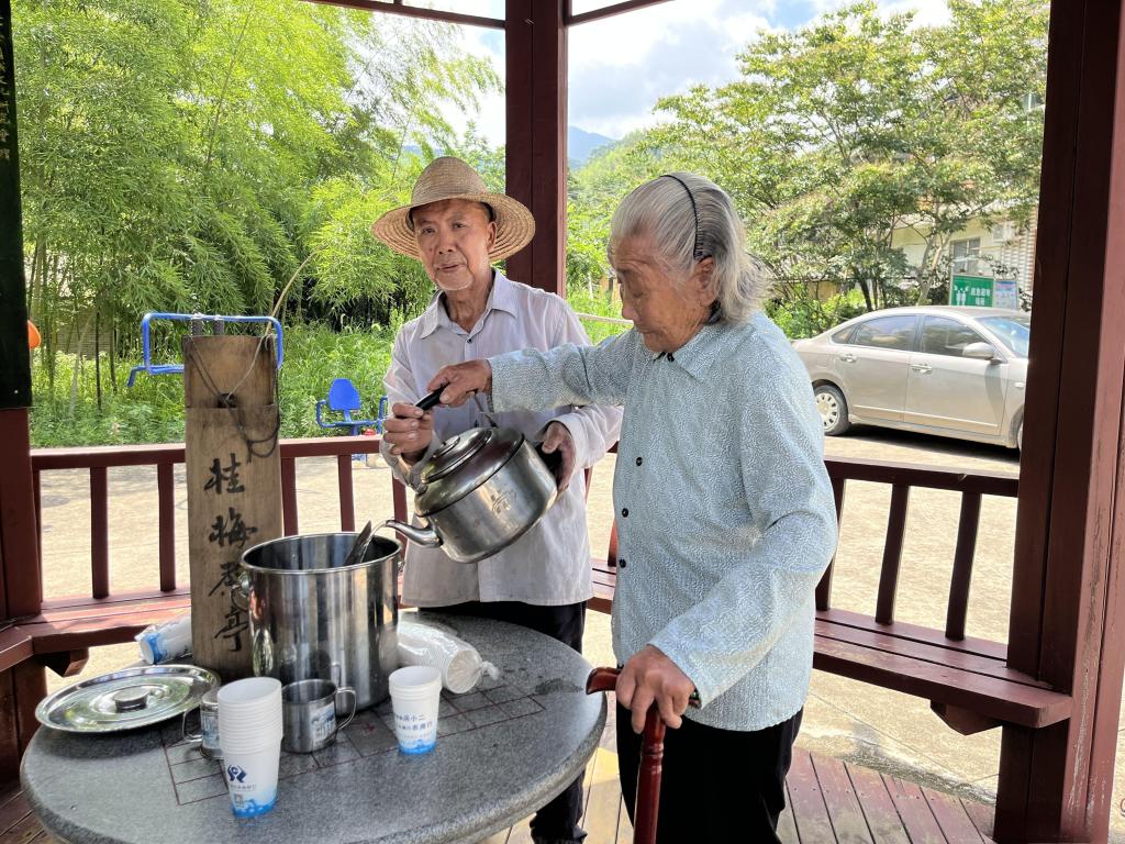 从60岁开始,94岁高龄的徐桂梅老人便坚持每天在家煮好茶水再送到村口路边,给过往行人送上一口甘爽,解决了大山里赶路人口干舌燥、无水解渴的实际困难。徐桂梅30多年的坚守感动了无数人,她被大家亲切地称为“凉茶奶奶”。今年4月,徐桂梅老人接受我校省级社科普及基地邀请成为基地“小镇宣讲员”。